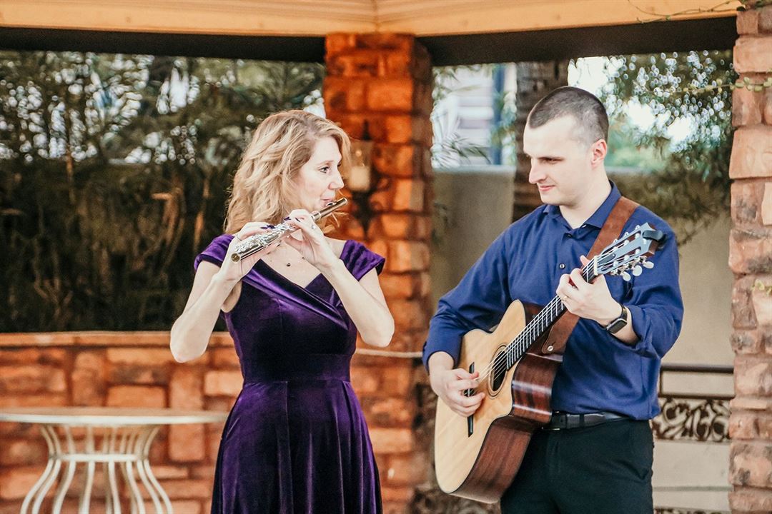 SoSco Duo is a professional flute and guitar duo from Scottsdale, Arizona. We perform elegant live music for weddings, private parties, corporate functions, and special events, creating a warm and sophisticated atmosphere.